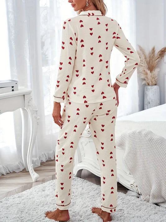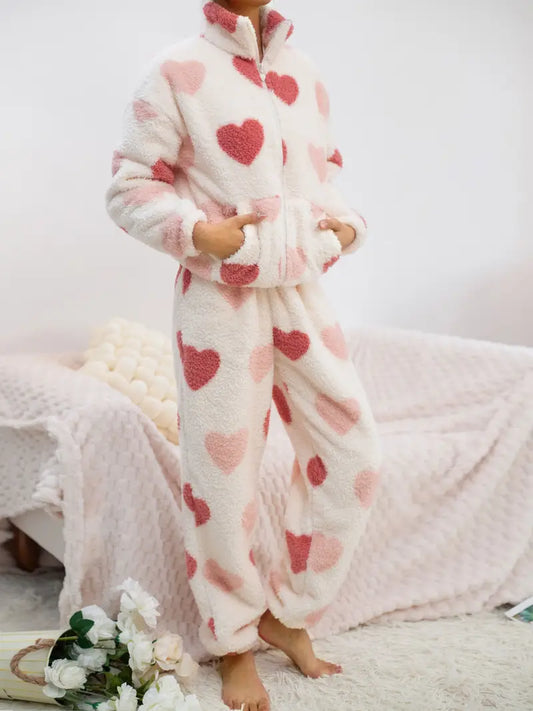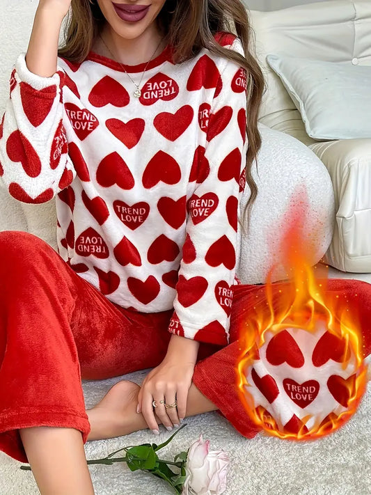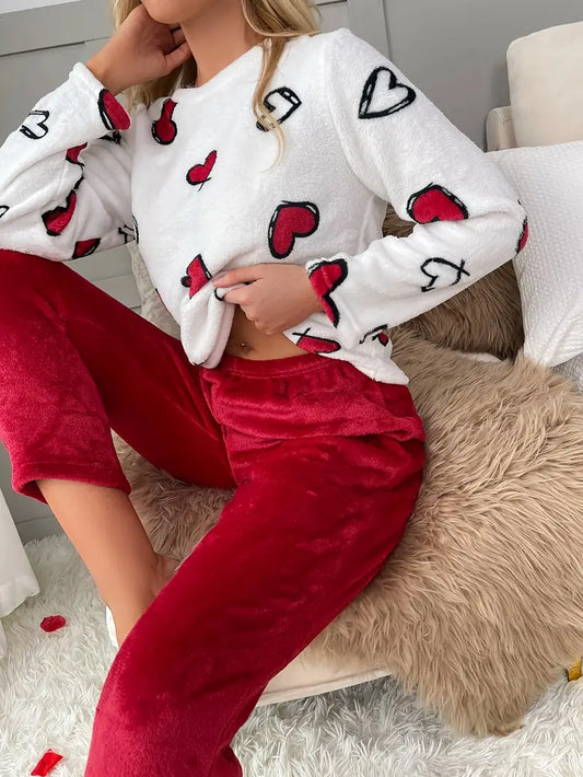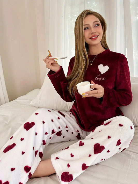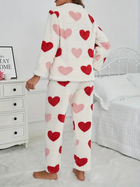 Valentine’s Heart-Patterned Flannel Pajama Set