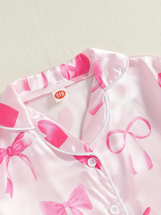 Heart Print Valentine's Day Pajama Set for Girls 2-9 Years