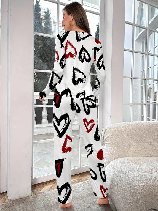 Valentine’s Long Sleeve Top and Pants with Heart Pattern